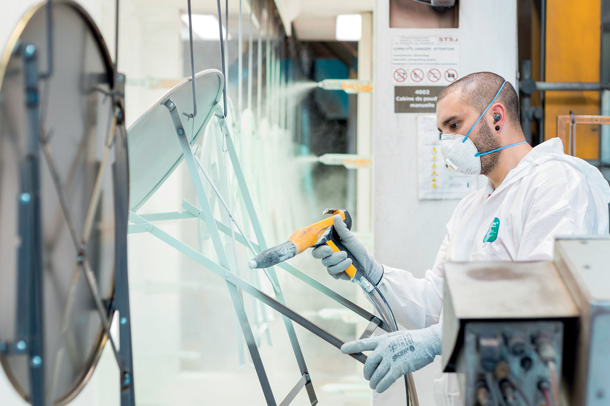 Stolik Bistro nabiera koloru Ice Mint :) w jednej z fabryk Fermob'a w Thoissey, Francja